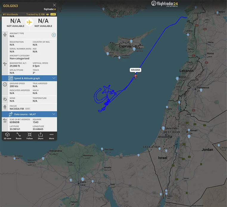 Uçuş, Gazze’de geçen hafta varılan ateşkes kararının ardından yaşandı. Bayraktar Akıncı TİHA Doğu Akdeniz semalarında ay-yıldız rotası çizdi. GOLGE63 çağrı işaretini kullanan Akıncı İHA, Kuzey Kıbrıs’ın doğusundan Akdeniz’in uluslararası hava sahasına girdi. Ancak resmi savunma kaynaklarından henüz bir doğrulama gelmedi.